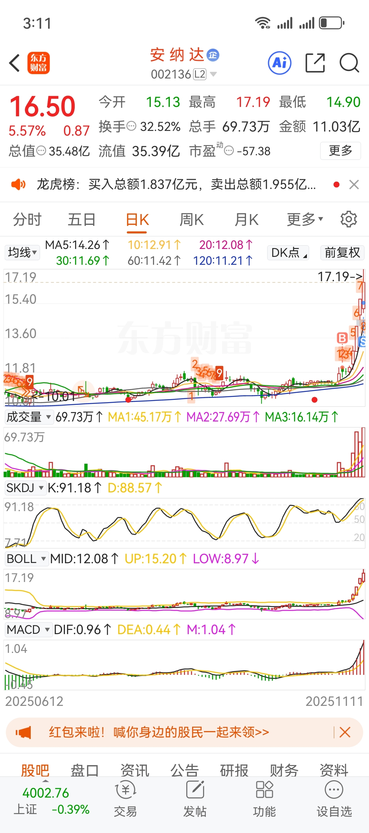 $安 纳 达(SZ002136)$ 今天太狠了,逼得我水下0.5个点跑了,吃了28个点