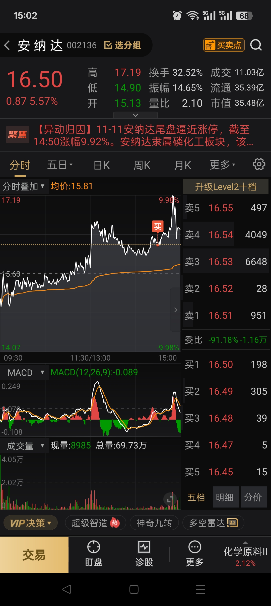 $安 纳 达(SZ002136)$ 妥妥的三秒男