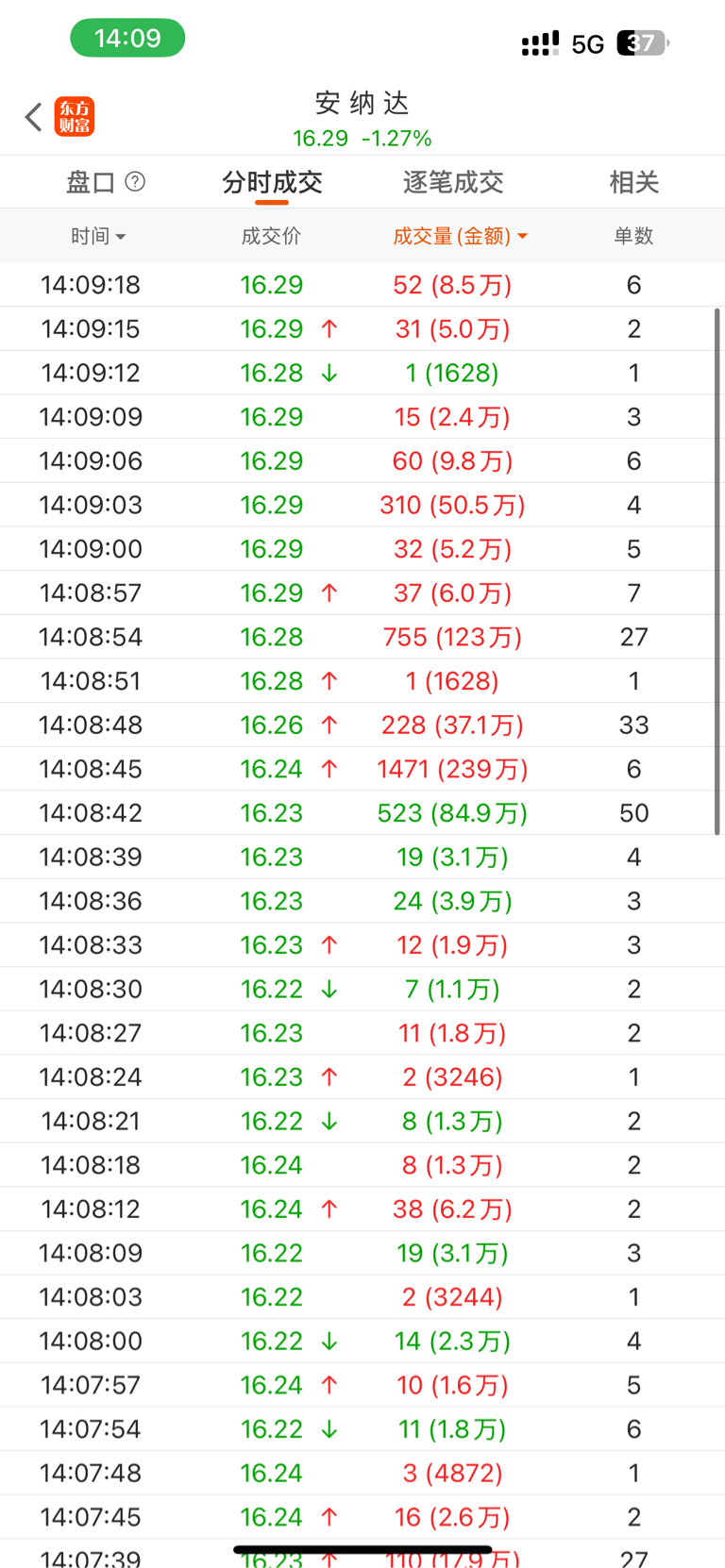 $安 纳 达(SZ002136)$ 你们注意盯盘看,很有意思的,基本上散户挂了几百万,量化秒吃