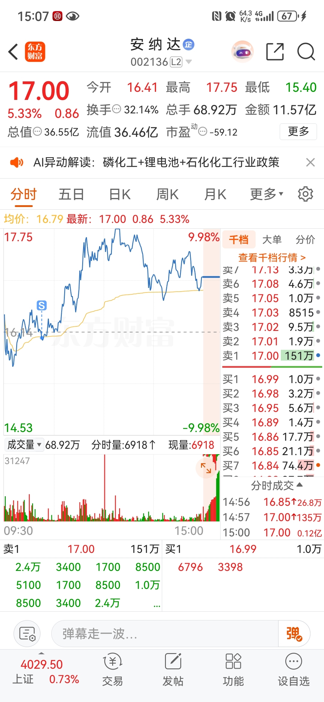 $安 纳 达(SZ002136)$ 我是真的菜哦哦,韭菜