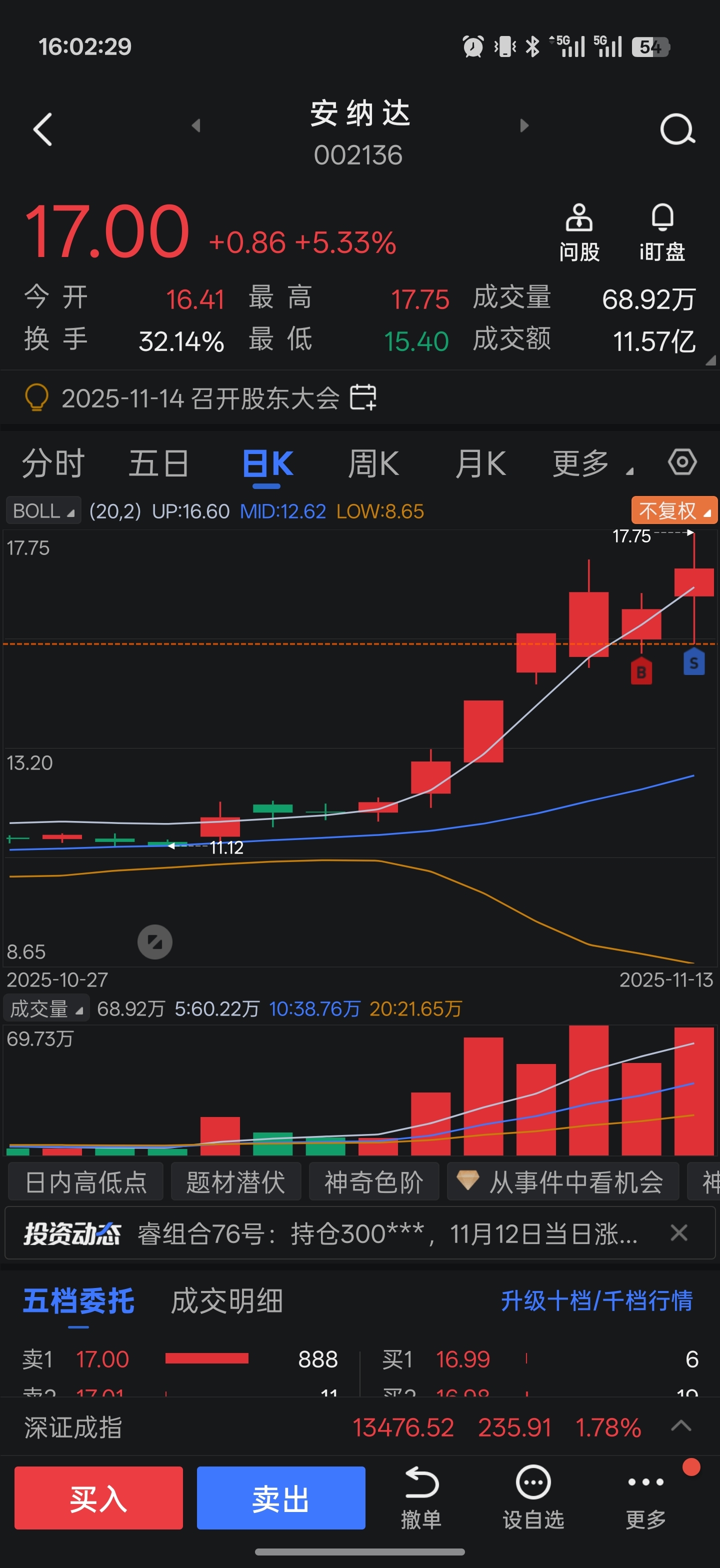 $安 纳 达(SZ002136)$ 曾子来了,明天低开接回