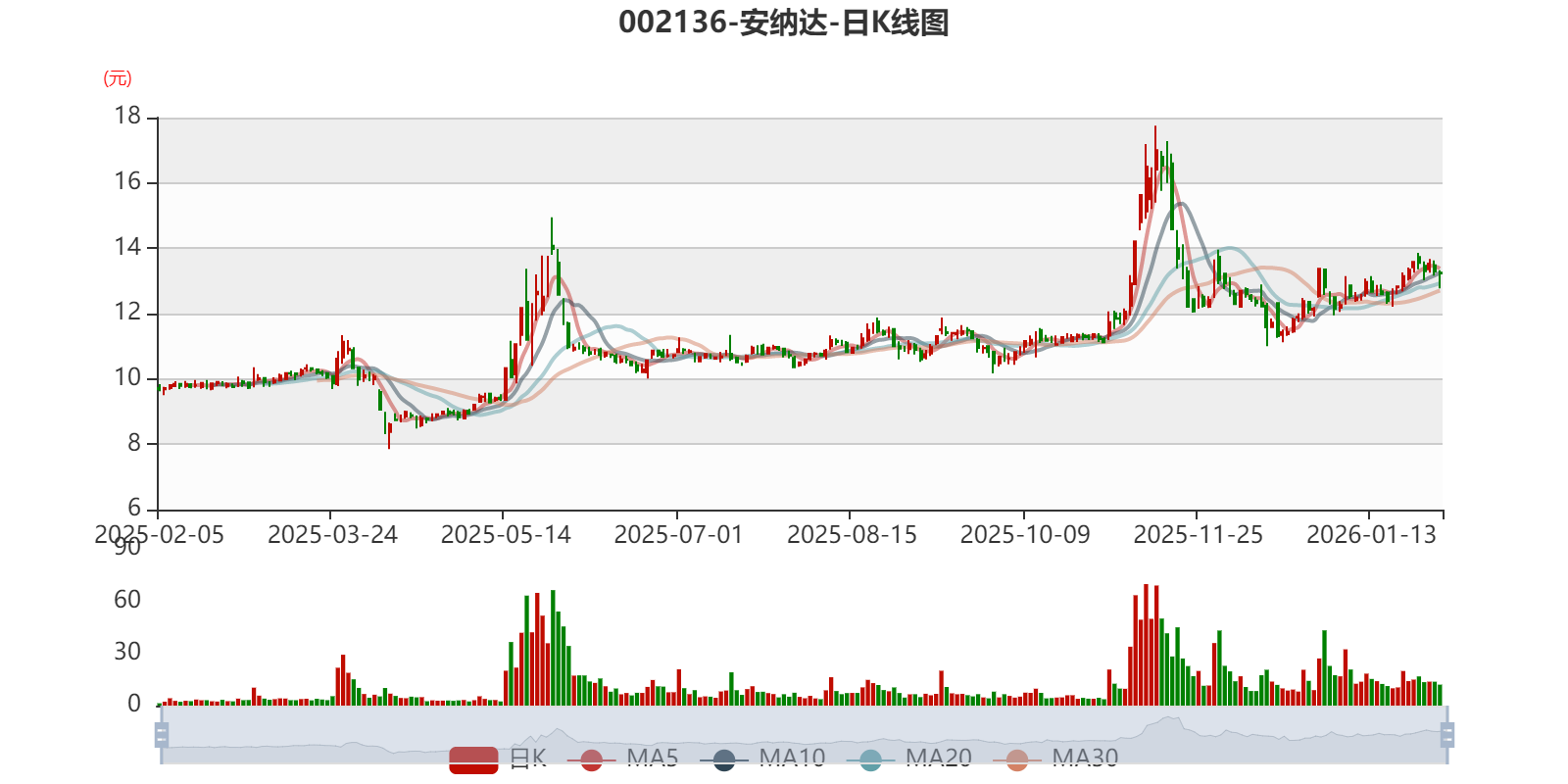 中证智能财讯安纳达(002136)1月30日晚间披露2025年度业绩预告,预计2025年归母净利润亏损6500万元至1.03亿元,上年同期盈利1125.62万元;扣非净利润亏损5320万元至9120万元,上年同期盈利1772.39万元;基本每股收益-0.3023元/股至-0.479元/股。以最新收盘价计算,市净率(LF)约2.52倍,市销率(TTM)约1.58倍。