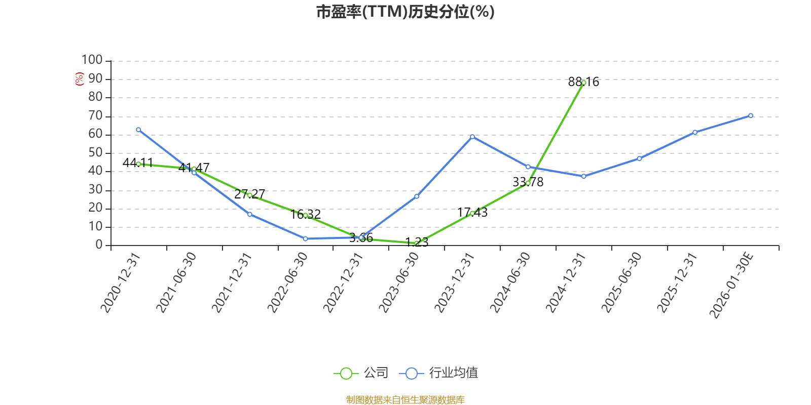 以本次披露业绩预告均值计算,公司近年市盈率(TTM)图如下所示: