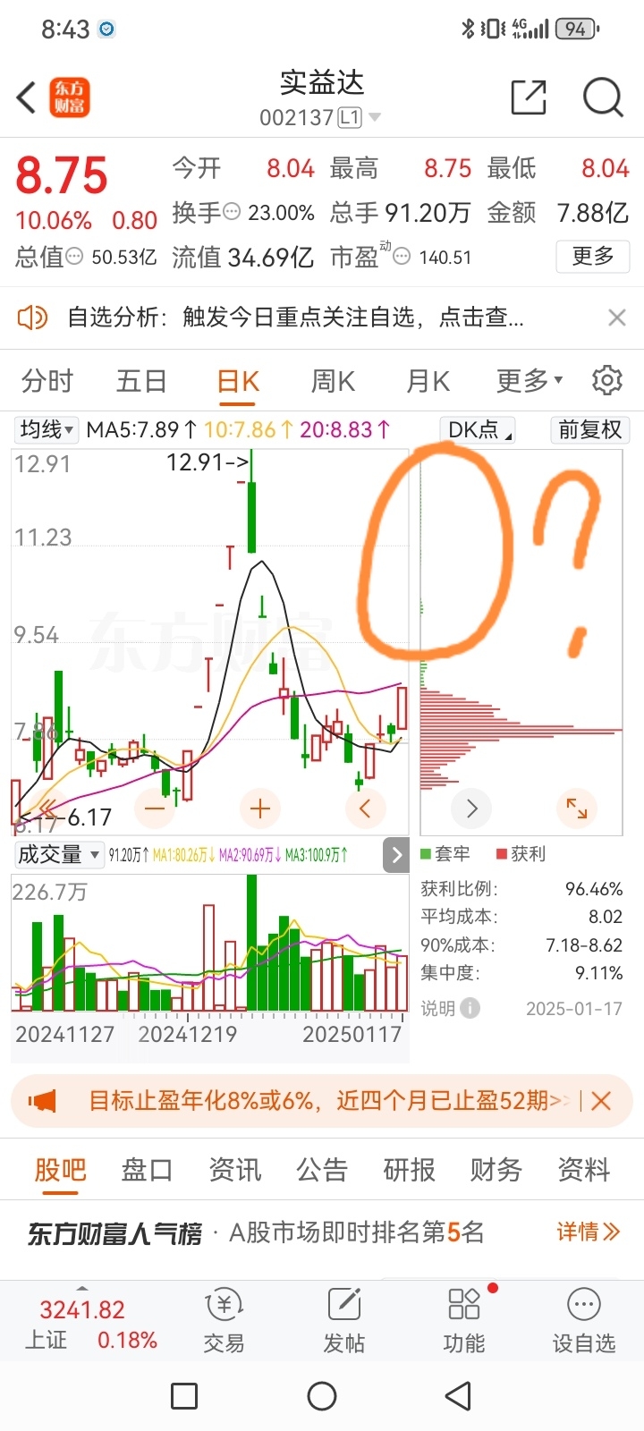 $实益达(SZ002137)$ 啥意思????被套的人少了吗?