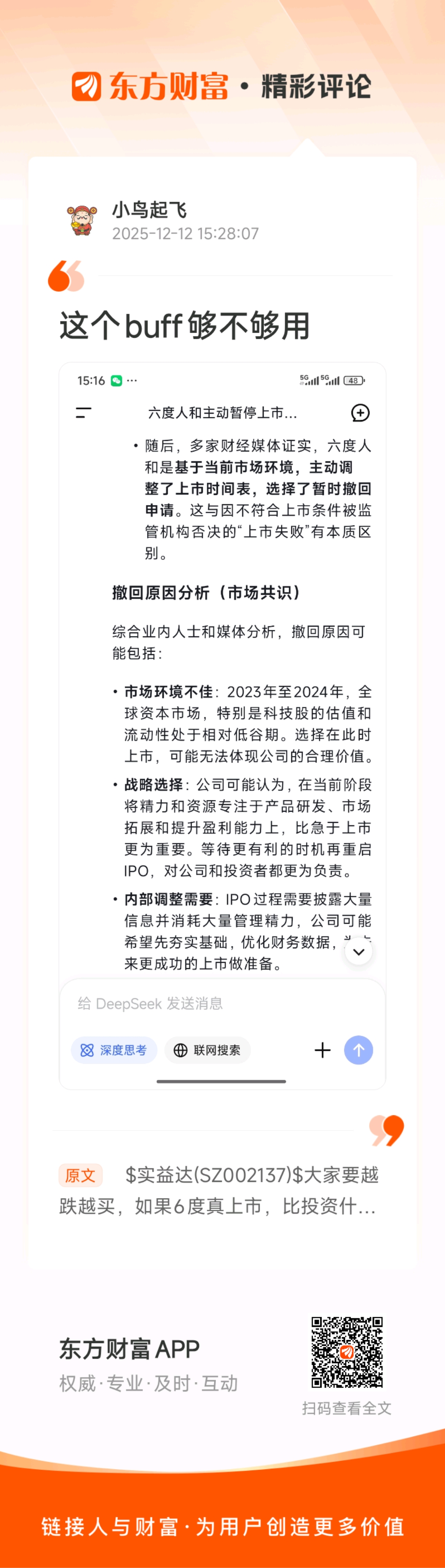 $实益达(SZ002137)$  大家要越跌越买,如果6度真上市,比投资什么都合的来,现在这么好的标,市场上:不多了。