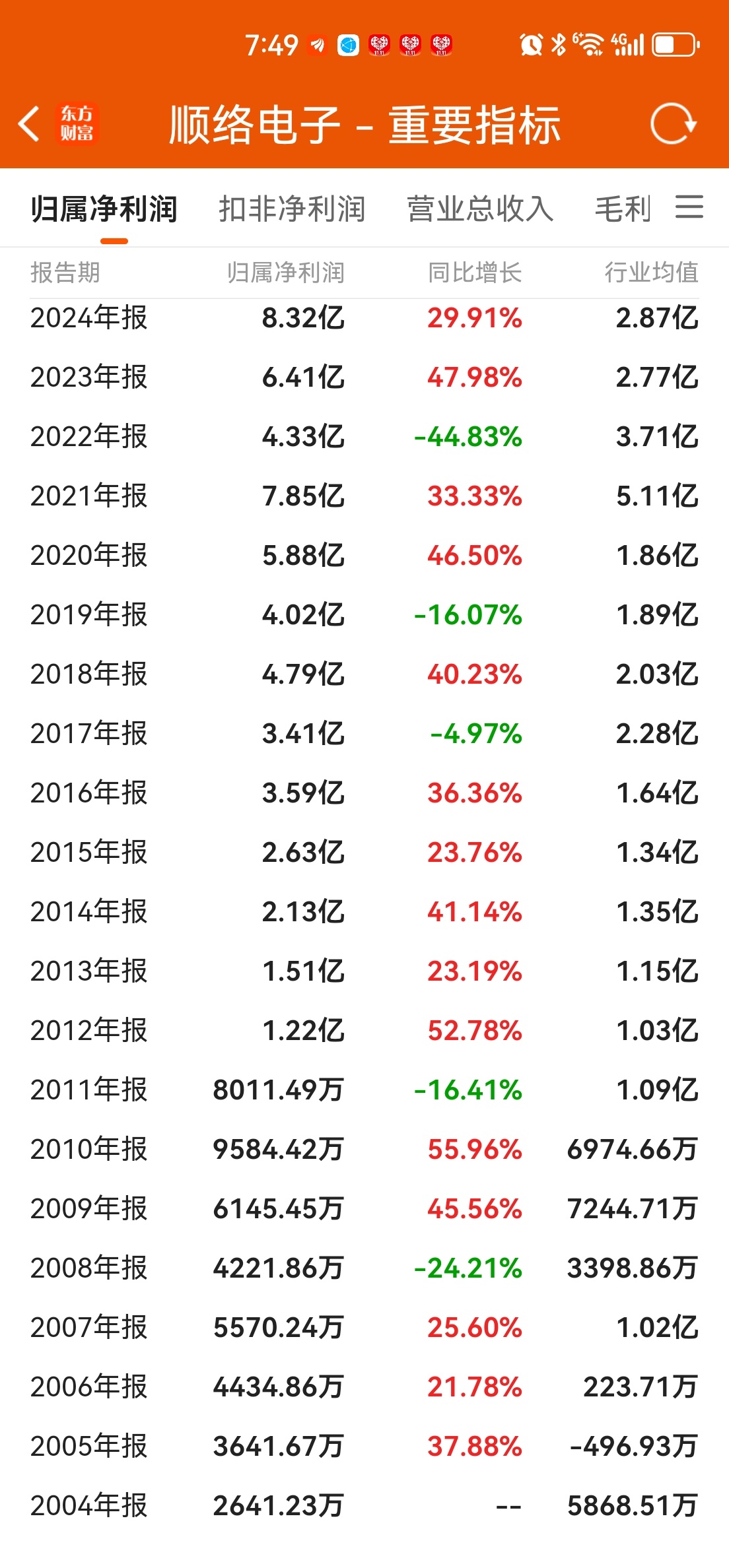 顺络电子至今已经连续21年盈利。而且盈利的数额逐年提高。2025年有望实现净利润逾10亿元!值得庆贺!