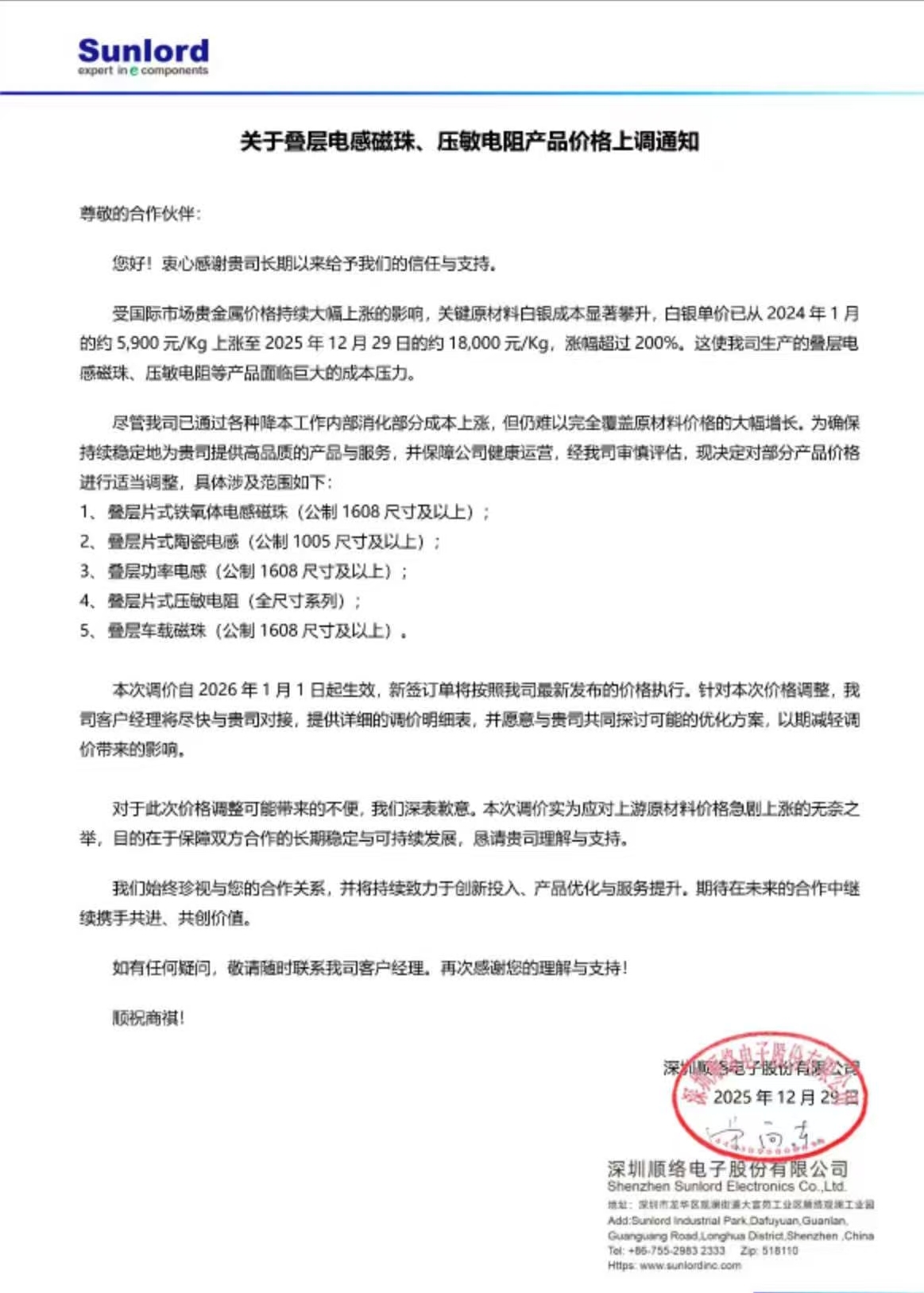 $顺络电子(SZ002138)$ 涨价!涨价!