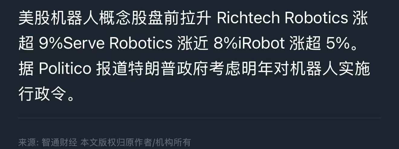 新闻里提到的美股涨幅:Richtech、Serve、iRobot→都是服务类或清