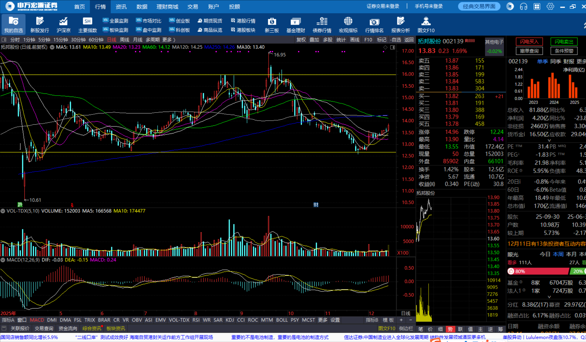拓邦股份(002139)在2025年11月下旬至12月初,确实在日线级别上形成了