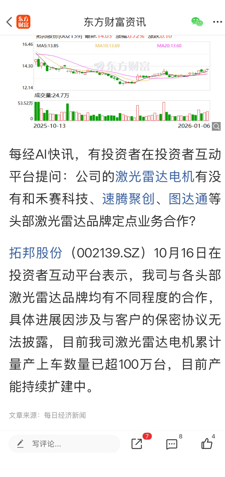 郑重声明:用户在财富号/股吧/博客等社区发表的所有信息(包括但不限于文字、视频、音频、数据及图表)仅代表个人观点,与本网站立场无关,不对您构成任何投资建议,据此操作风险自担。请勿相信代客理财、免费荐股和炒股培训等宣传内容,远离非法证券活动。请勿添加发言用户的手机号码、公众号、微博、微信及QQ等信息,谨防上当受骗!