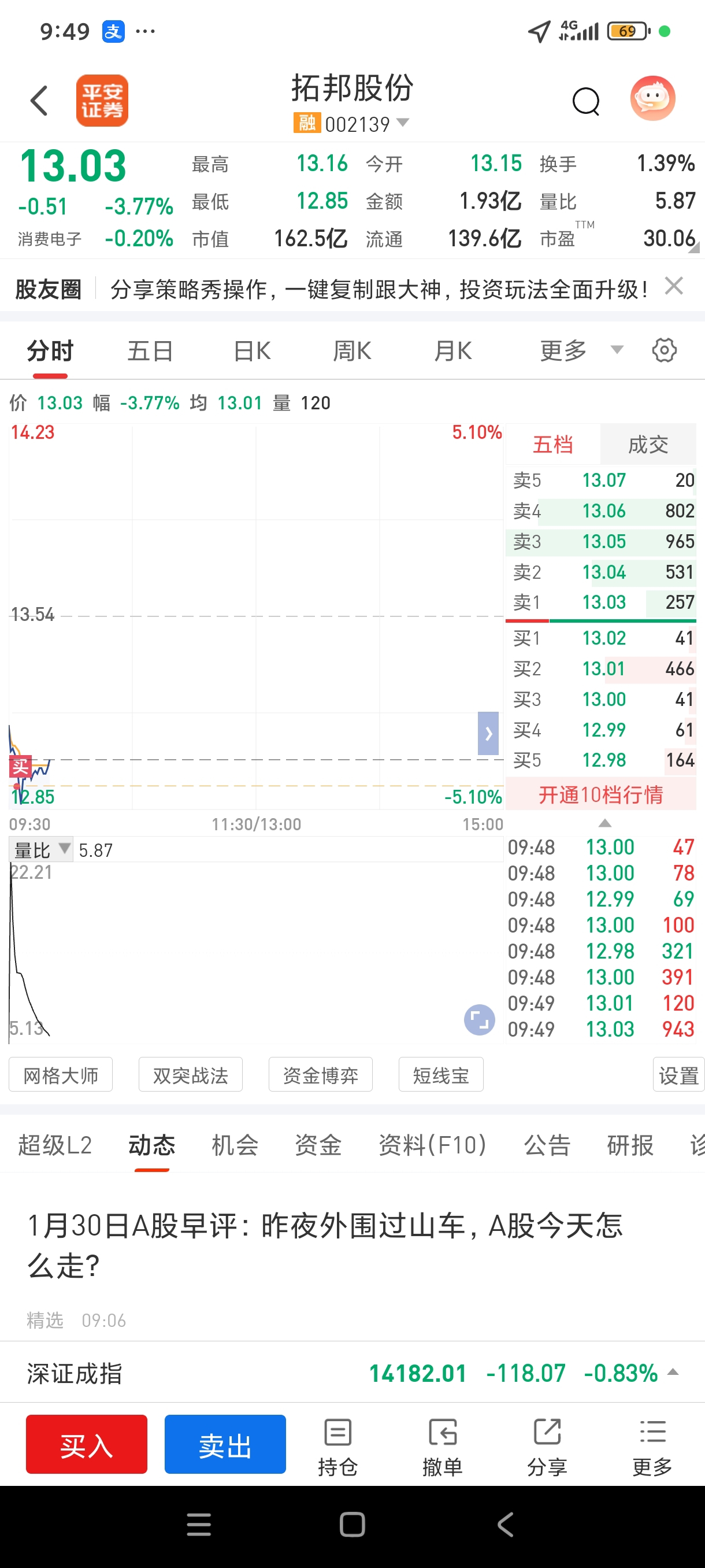 $拓邦股份(SZ002139)$ 昨天晚上挂单挂着玩的,今天睡醒竟然真的成交了,满仓啊,周一赶紧出