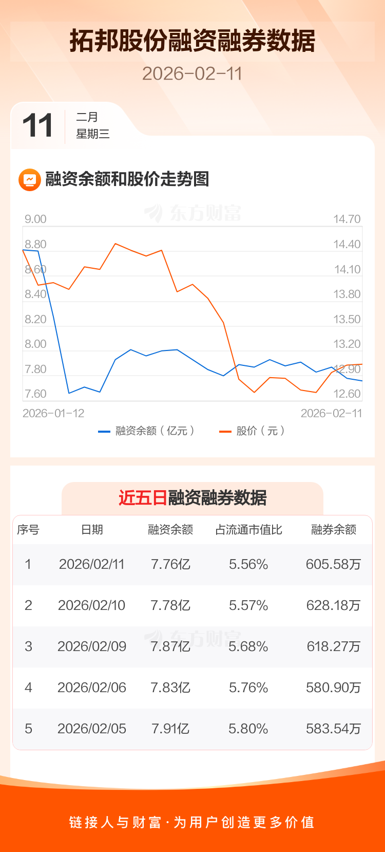 交易所最新数据显示,拓邦股份于2026年2月11日获融资买入1663.46万元,融资偿还1840.71万元,当日融资净偿还177.24万元。目前,该股融资余额7.76亿,占流通市值比例为5.56%。