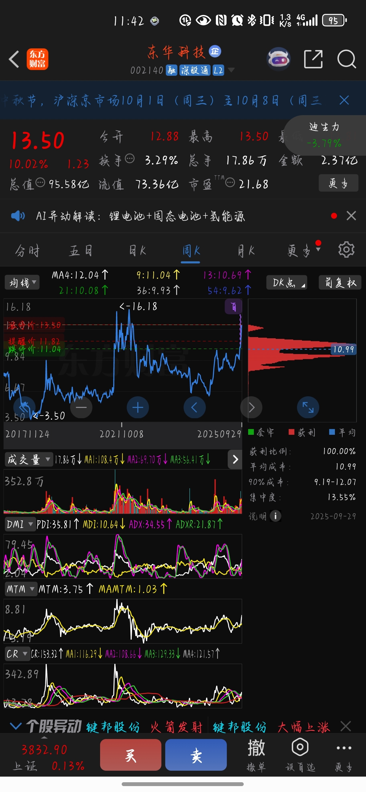 $东华科技(SZ002140)$ 刚好达到前期压力位。集合竞价抛压大,今天有严重缩量,并没有释放不坚定筹码和想要获利了结的散户。怨气就会积累到明天低开。就是不知道多方情绪会不会大于空方情绪。总体来说风险大于收益。但目前来说明天还是看高开的。