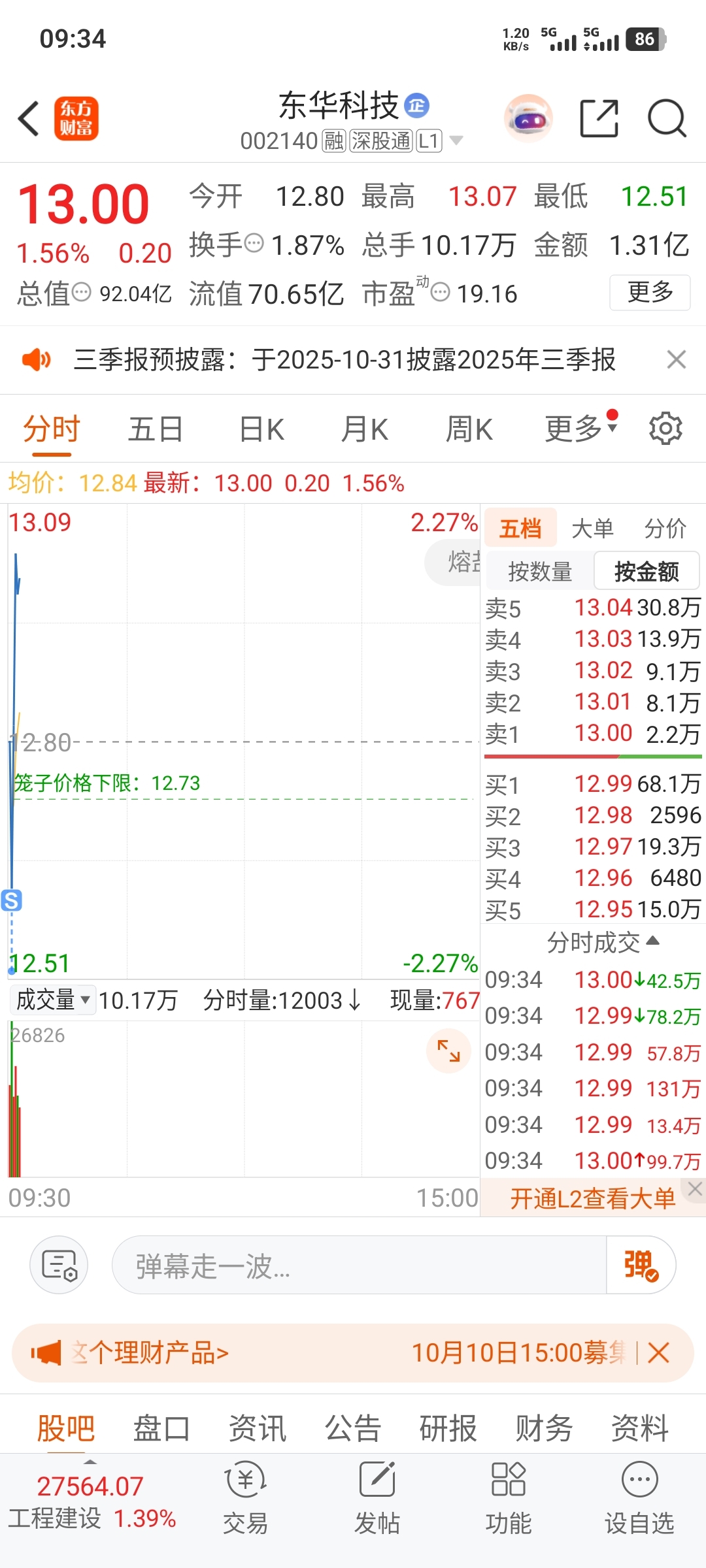 $东华科技(SZ002140)$ 割在最低处