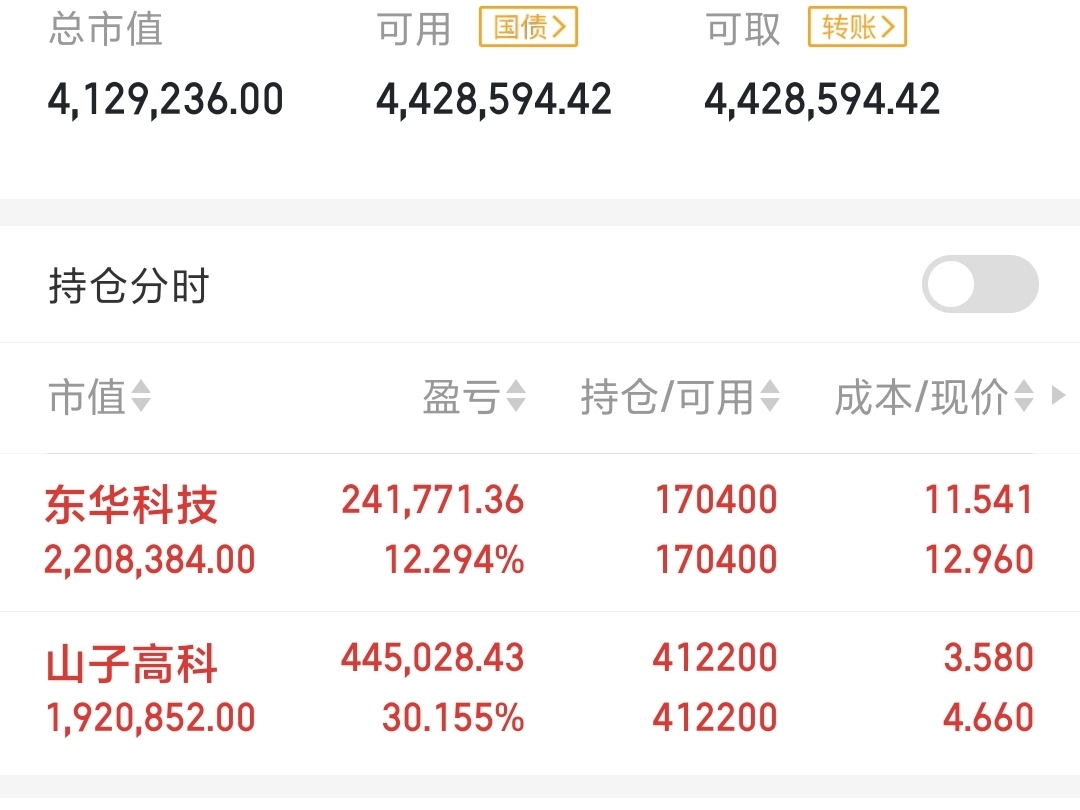 $东华科技(SZ002140)$ $山子高科(SZ000981)$ 今日持仓全线飘红,每一笔都是对未来的笃定,让涨停板为我们的眼光喝彩!