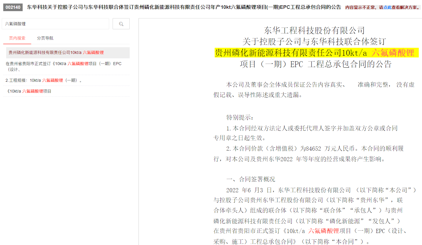 东华科技:全市唯一六氟磷酸锂上游建设项目设计施工承包商!