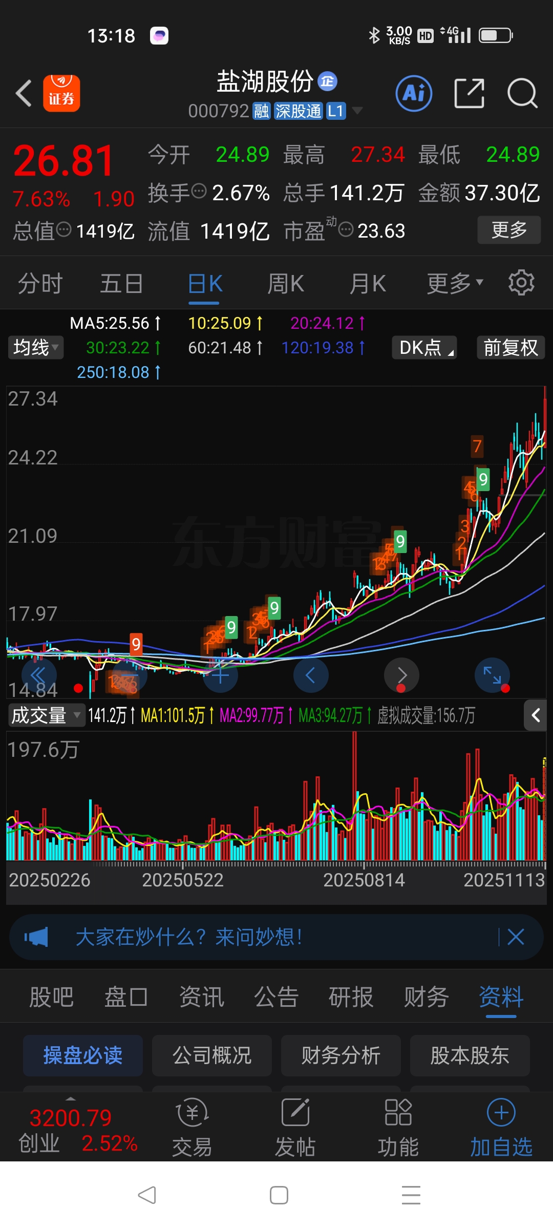 $东华科技(SZ002140)$ 走势不如52亿股本的盐湖股份。。