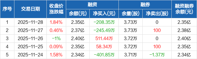 东华科技:融资净偿还208.35万元,融资余额2.35亿元(11-28)