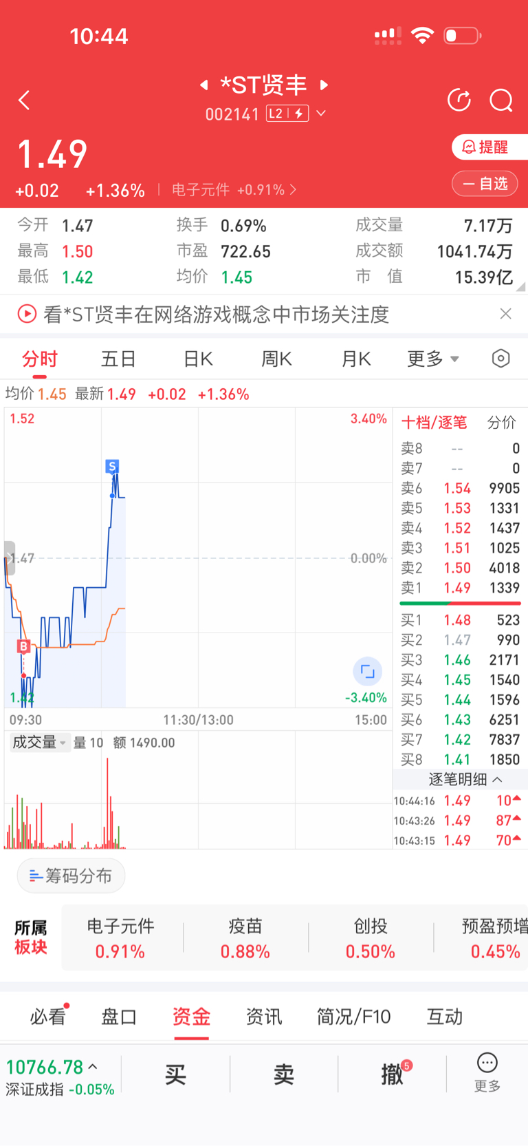 $*ST贤丰(SZ002141)$ 我出货了