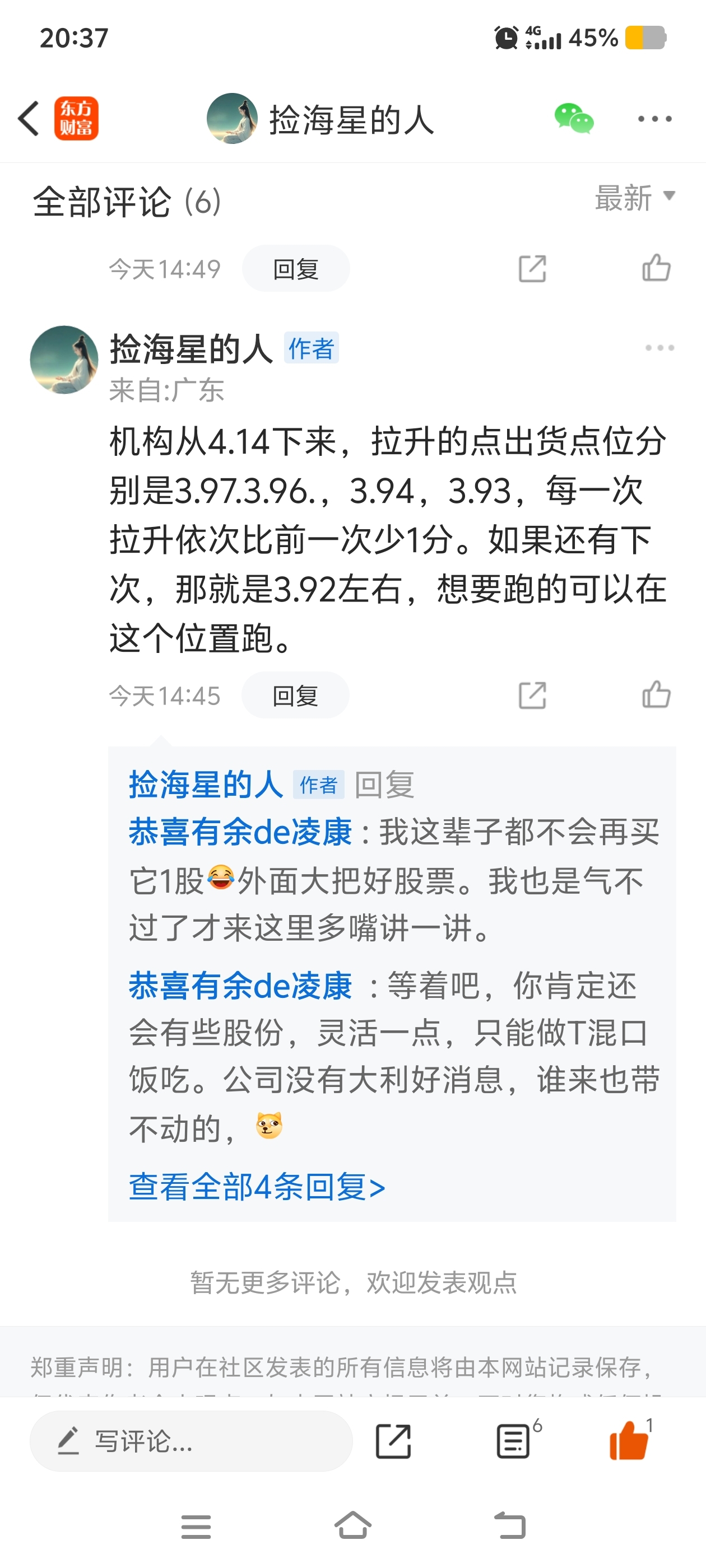 温馨提示: 1.根据《证券法》规定,禁止编造、传播虚假信息或者误导性信息,扰乱证券市场;2.用户在本社区发表的所有资料、言论等仅代表个人观点,与本网站立场无关,不对您构成任何投资建议。用户应基于自己的独立判断,自行决定证券投资并承担相应风险。《东方财富社区管理规定》