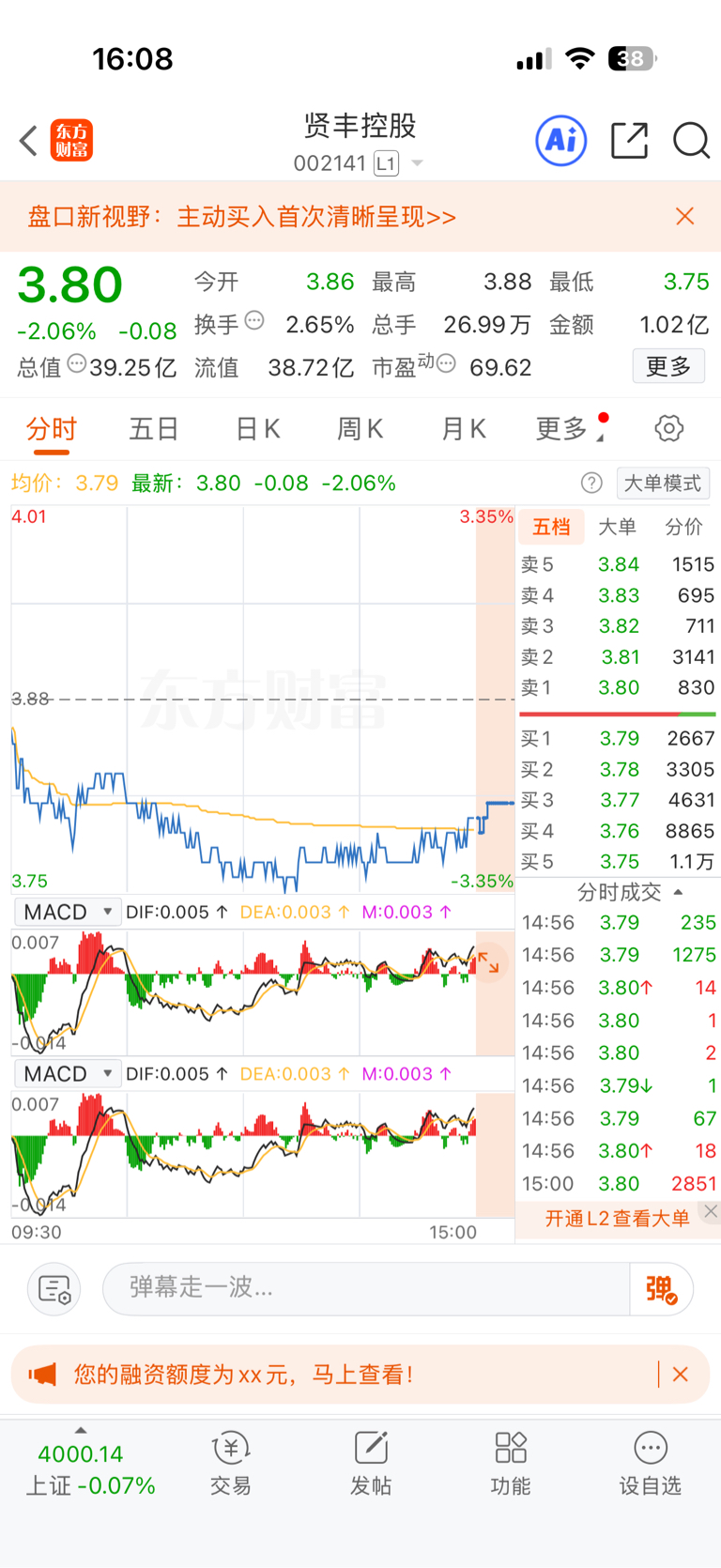$贤丰控股(SZ002141)$ 3.75元封盘还有1.1万手在打压,明显是故意要搞流拍