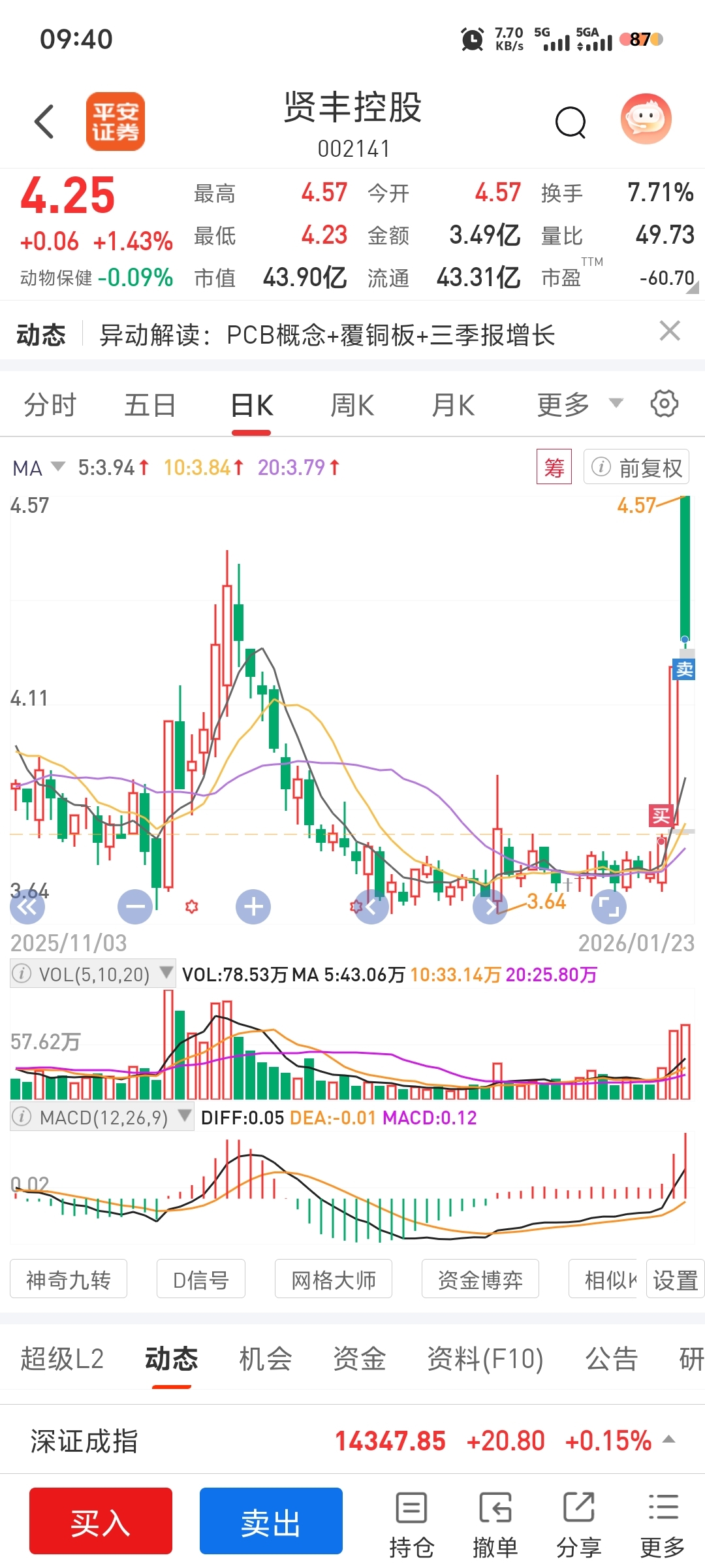 好久没同时持仓两只股票了,轻仓介入贤丰,容个错