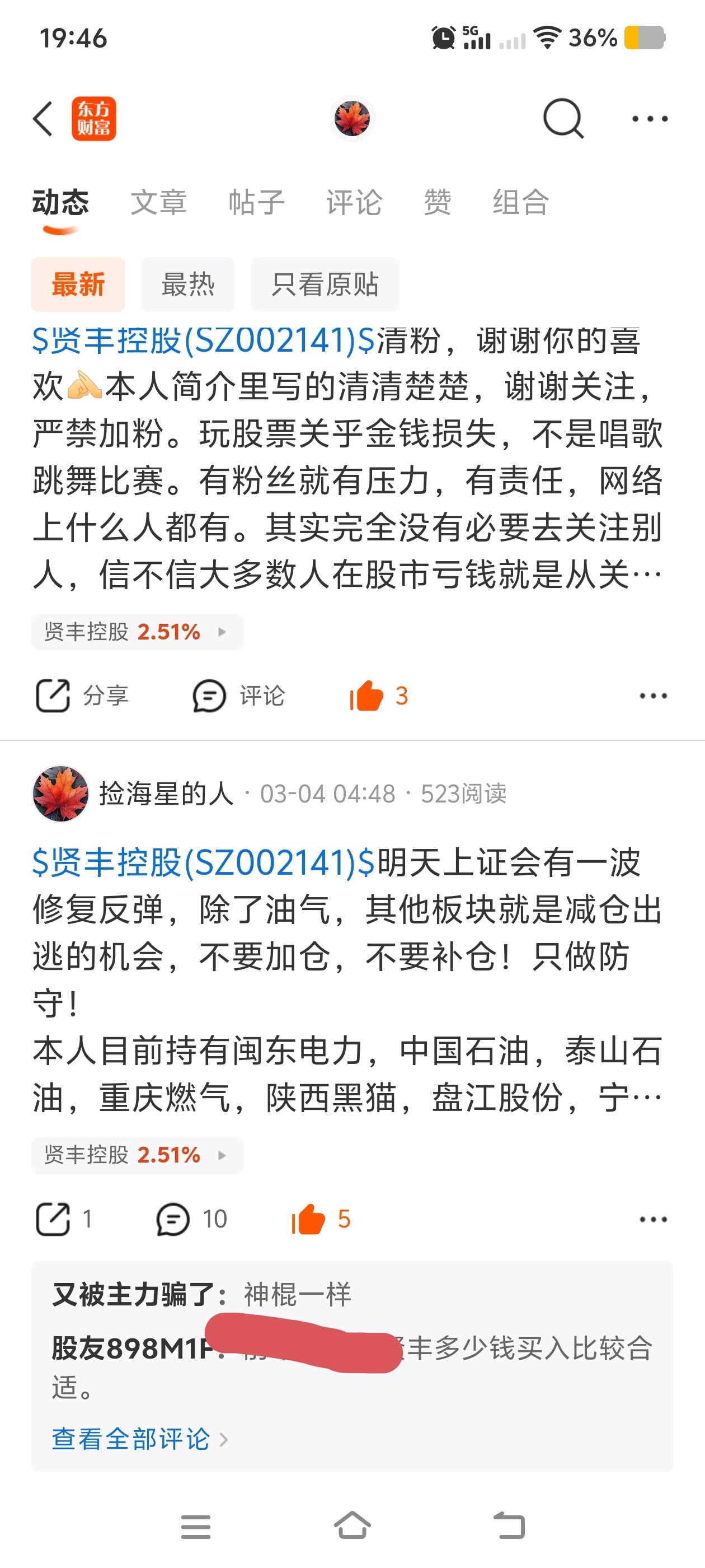 $贤丰控股(SZ002141)$ 又一个卜街S。对自己最好的保护就是不再分享,这句话讲的真对。不再和外界有任何交集,我又不是黄金,不需要人人都喜欢。