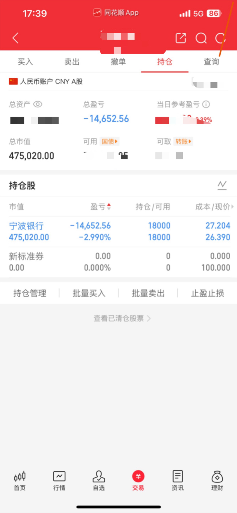 $宁波银行(SZ002142)$ 4.7号那天亏5万多,但愿这次轻点