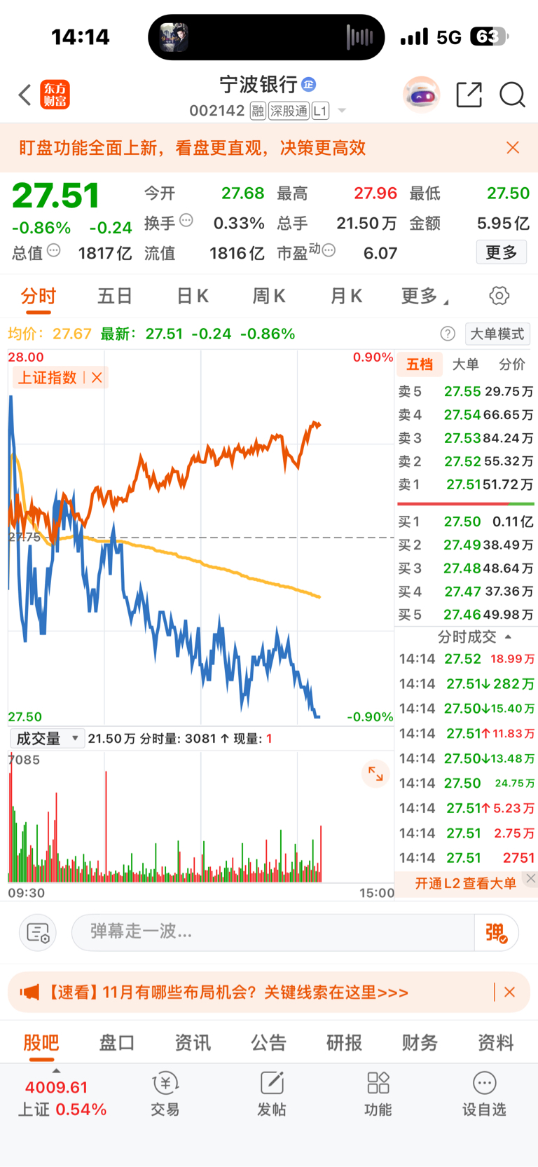 $宁波银行(SZ002142)$ 很有意思