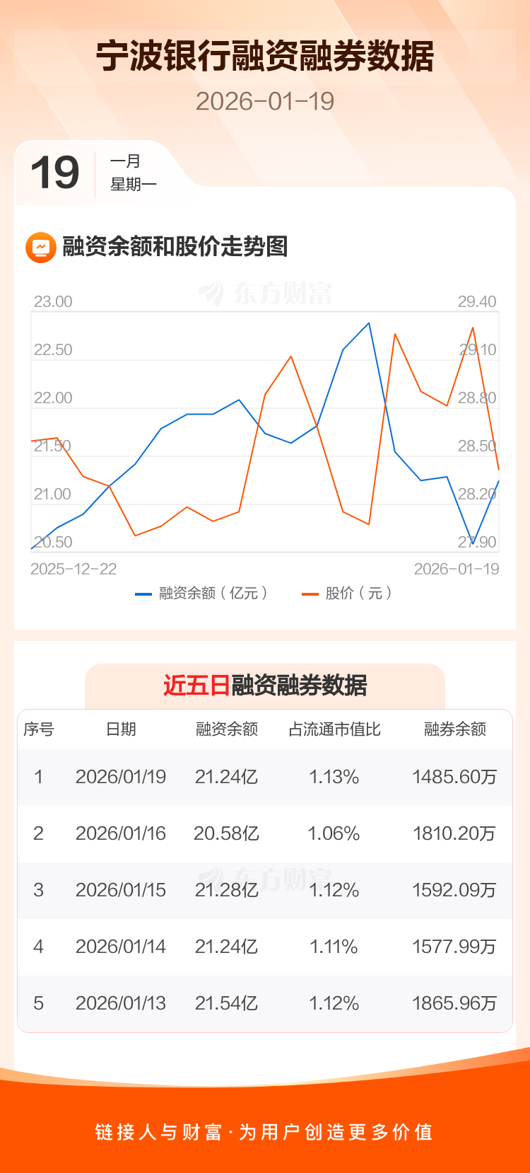 交易所最新数据显示,宁波银行于2026年1月19日获融资买入9626.51万元,融资偿还3039.48万元,当日融资净买入6587.03万元。目前,该股融资余额21.24亿,占流通市值比例为1.13%。