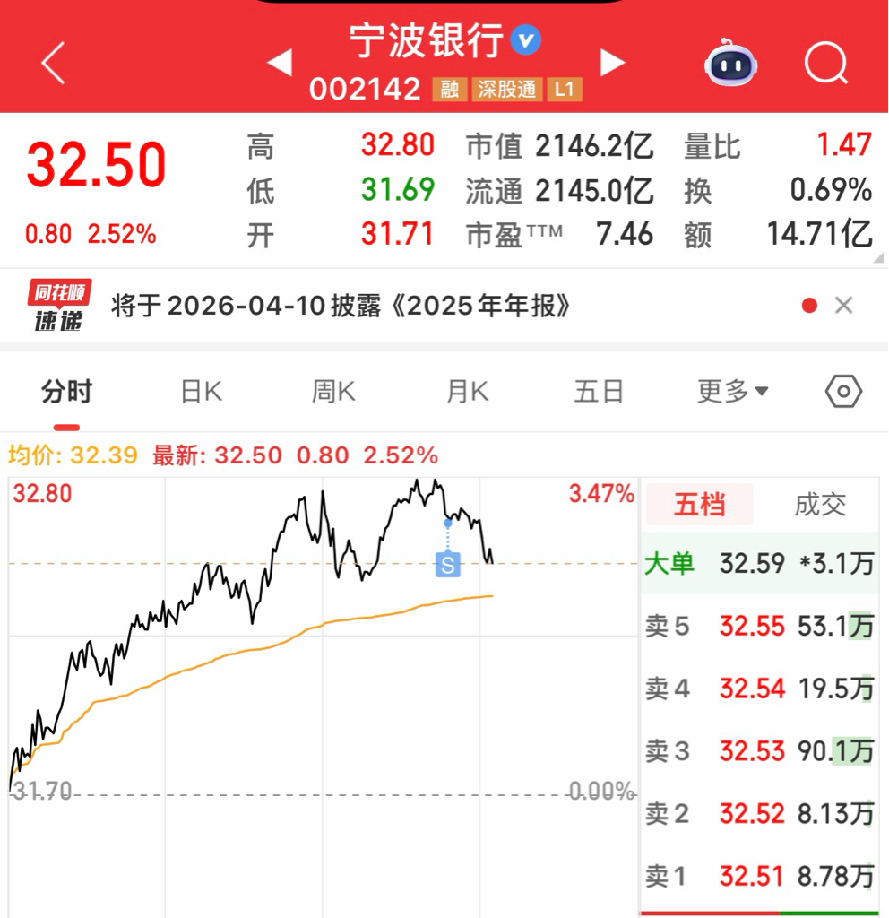 $宁波银行(SZ002142)$ 卖在人声鼎沸处