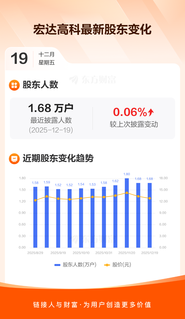 宏达高科:截至12月19日最新股东户数1.68万户,较上期增加0.06%