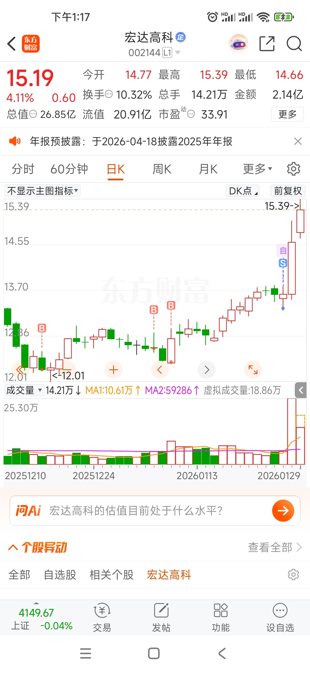 $宏达高科(SZ002144)$ 好咯,只喝了口汤,平时基本不怎么丁,真的不能一直丁盘,一丁就乱,一乱就卖