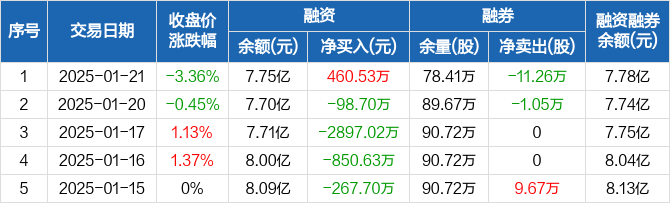 中核钛白:融资净买入460.53万元,融资余额7.75亿元(01-21)