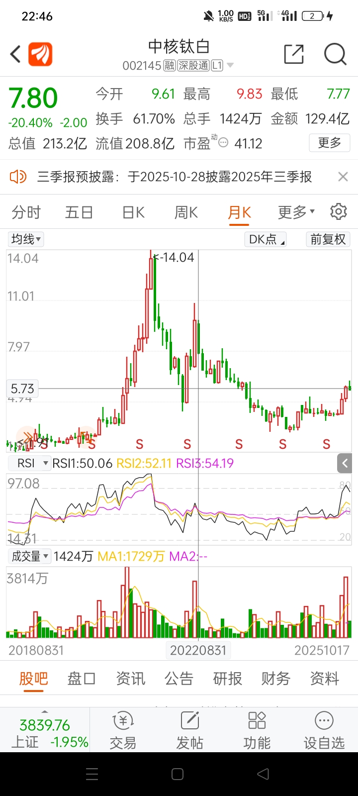 月线爆量了,说明前期上涨为假长,而高位就是5到6块之间,他们两个量差不多,如果说