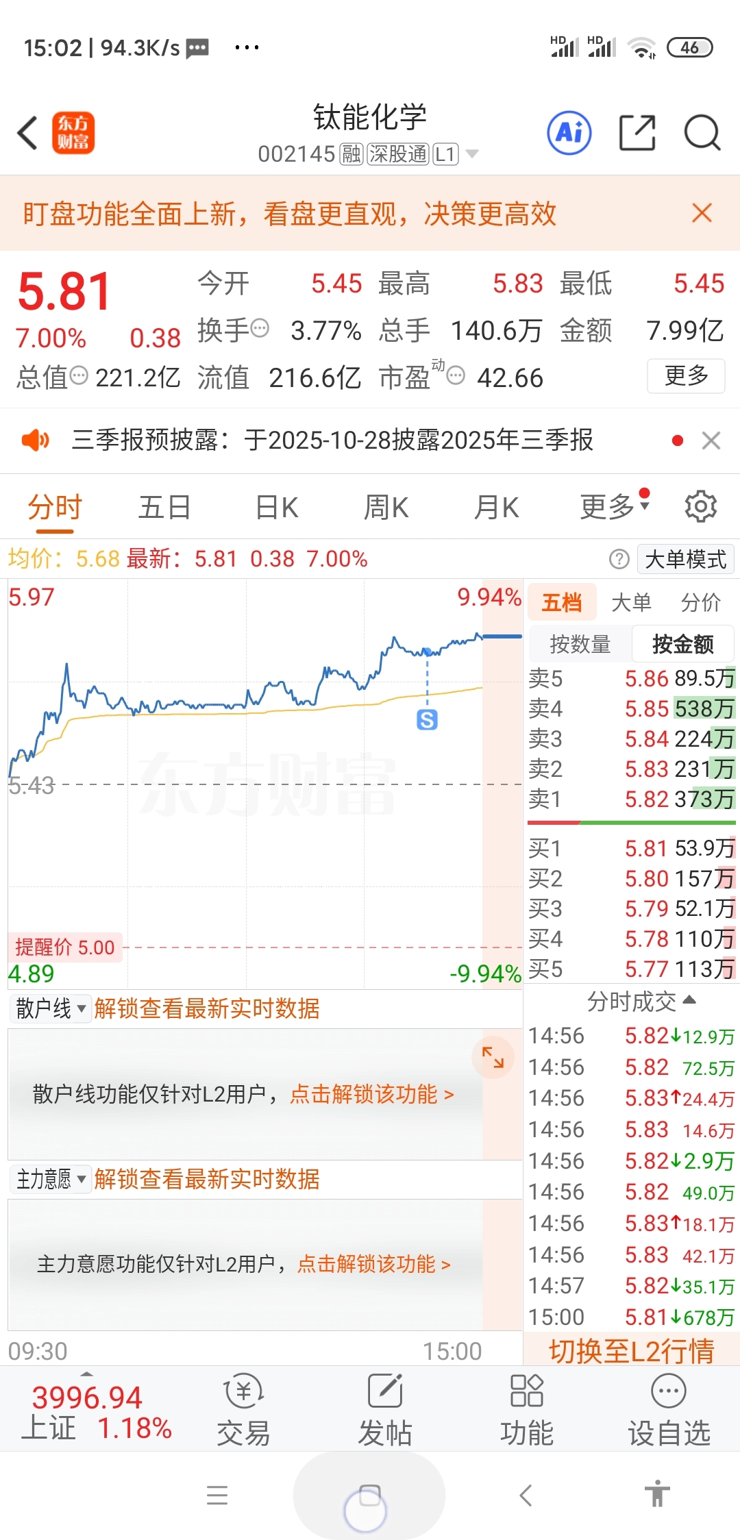 $钛能化学(SZ002145)$ 见好就收 ,看看明天有没有低点可以低吸!