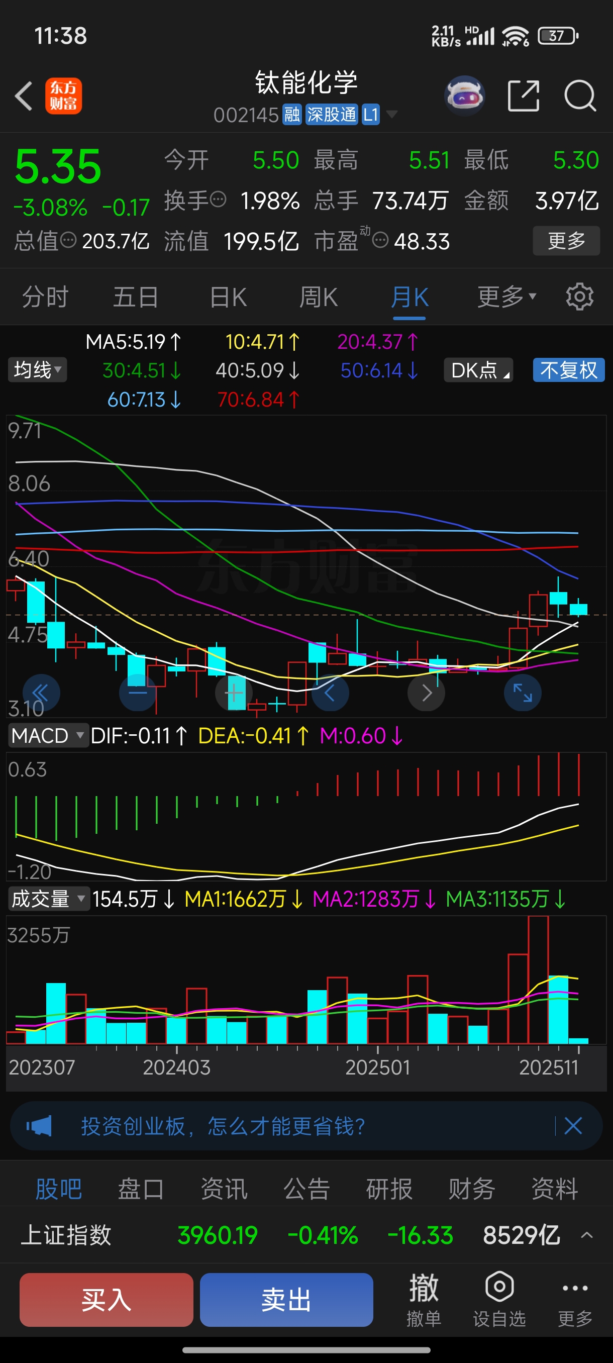 $钛能化学(SZ002145)$ 看清楚!股价必然回踩5月均线5.18元