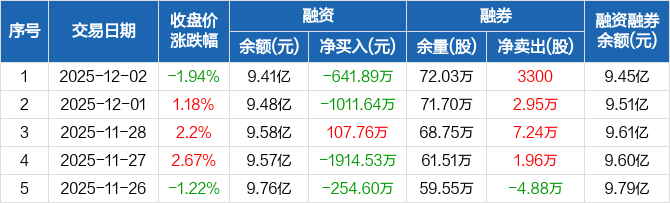 钛能化学:融资净偿还641.89万元,融资余额9.41亿元(12-02)