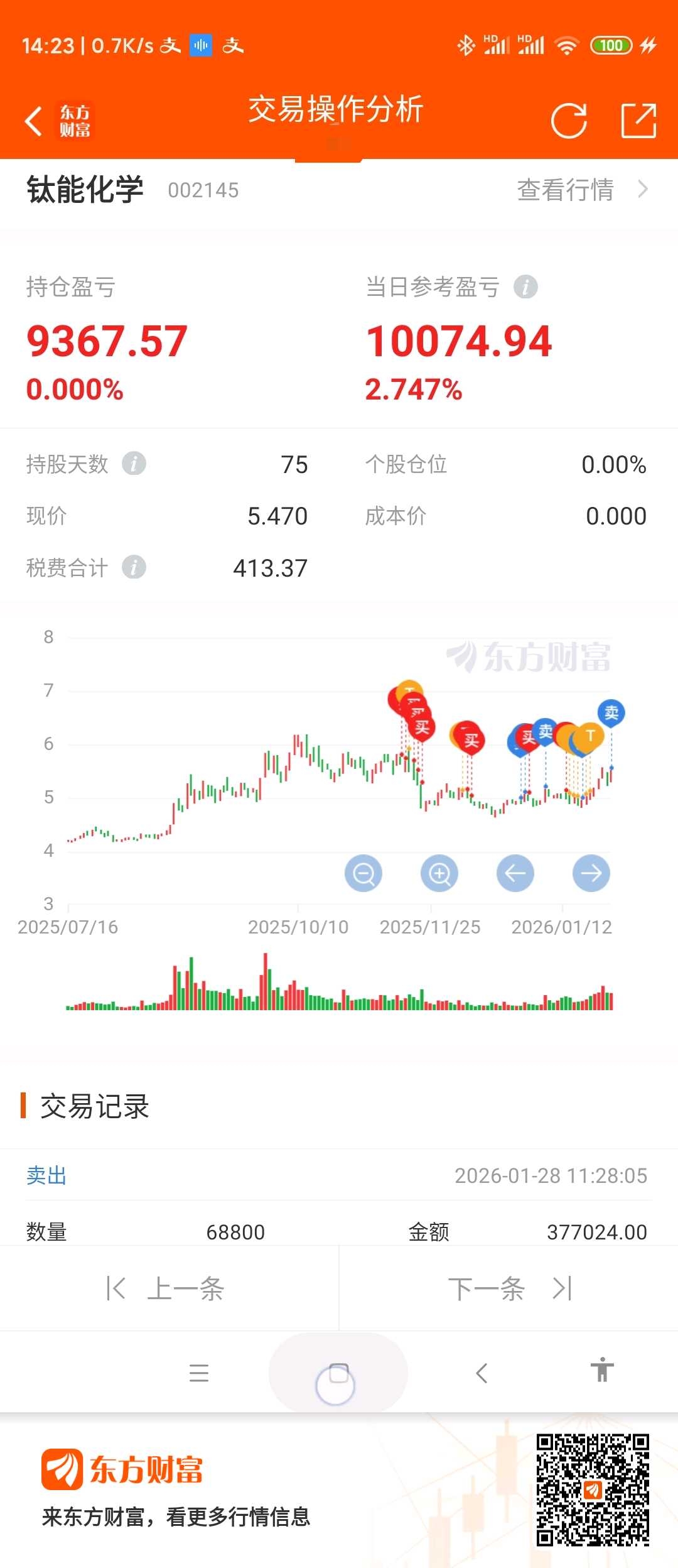 $钛能化学(SZ002145)$ 兄弟们,今天小号卖了7万股,还有六成仓位,等来年再战,先拿钱过年,落袋为安!