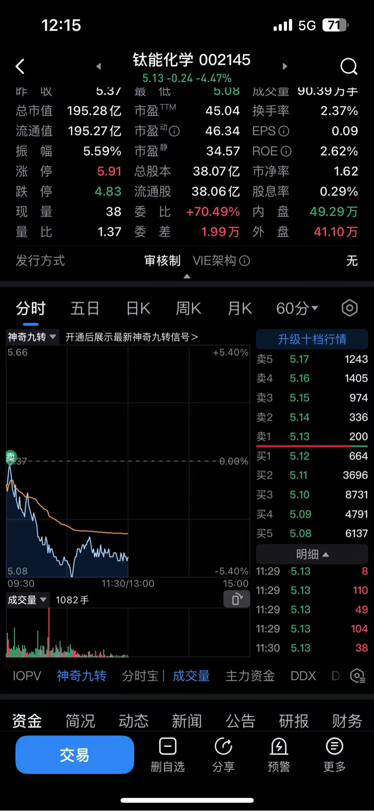 $钛能化学(SZ002145)$ 这个逃顶技术怎么样