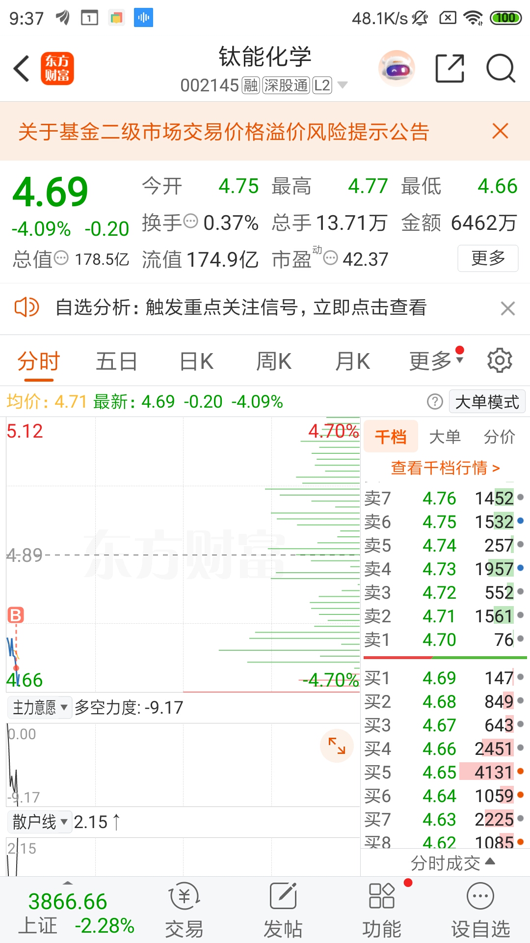 $钛能化学(SZ002145)$ 加了5万股,现在的策略,每下跌一毛钱加1万股。直到你退市为止。