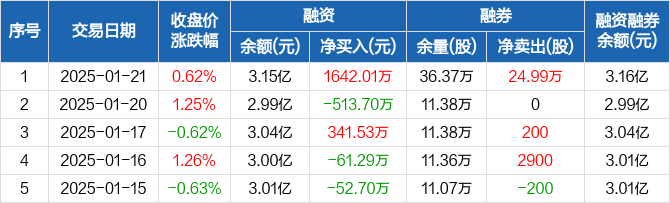 荣盛发展:融资净买入1642.01万元,融资余额3.15亿元(01-21)