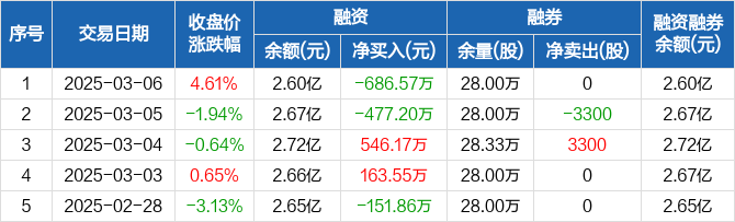 荣盛发展:融资余额2.6亿元,创近一年新低(03-06)