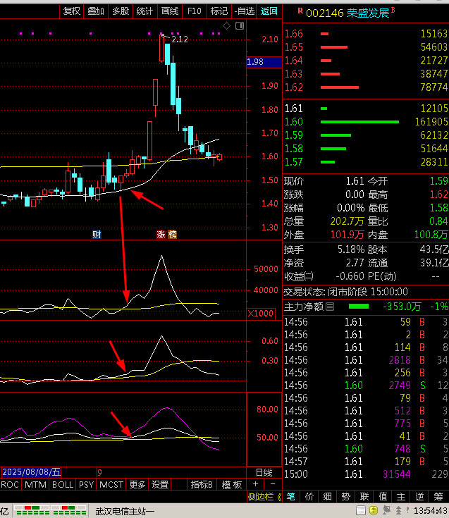 这4条线同时组合,什么行情都逃不掉的,现在的荣盛还没到起来的时候,先拿着别动啊,等时间起来!!