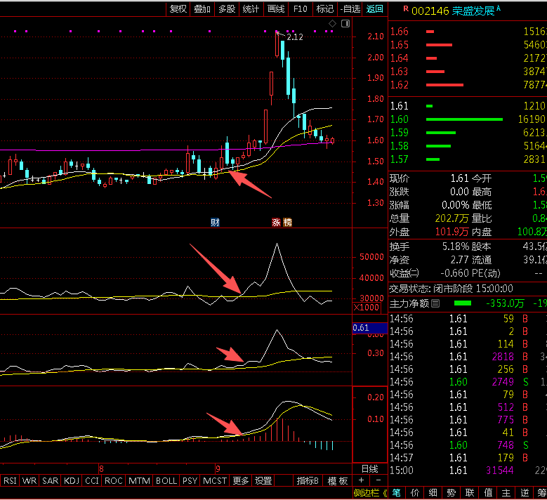 荣盛发展的上次上2.12时-四线共振,目前四线都转头向下,但下跌没什么空间的,等