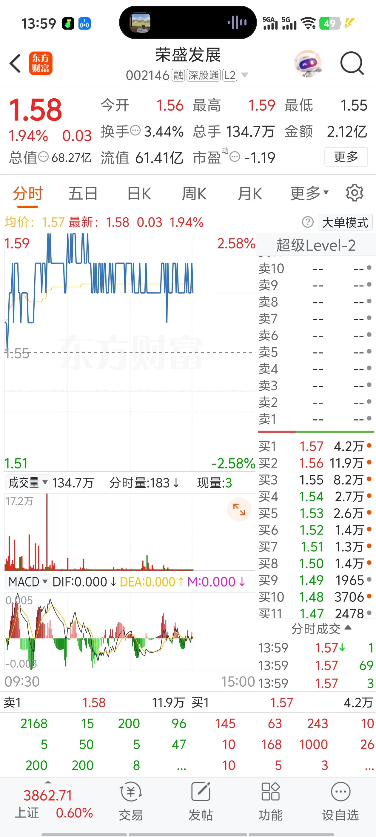 $荣盛发展(SZ002146)$ 吓我一跳,我还以为涨停了