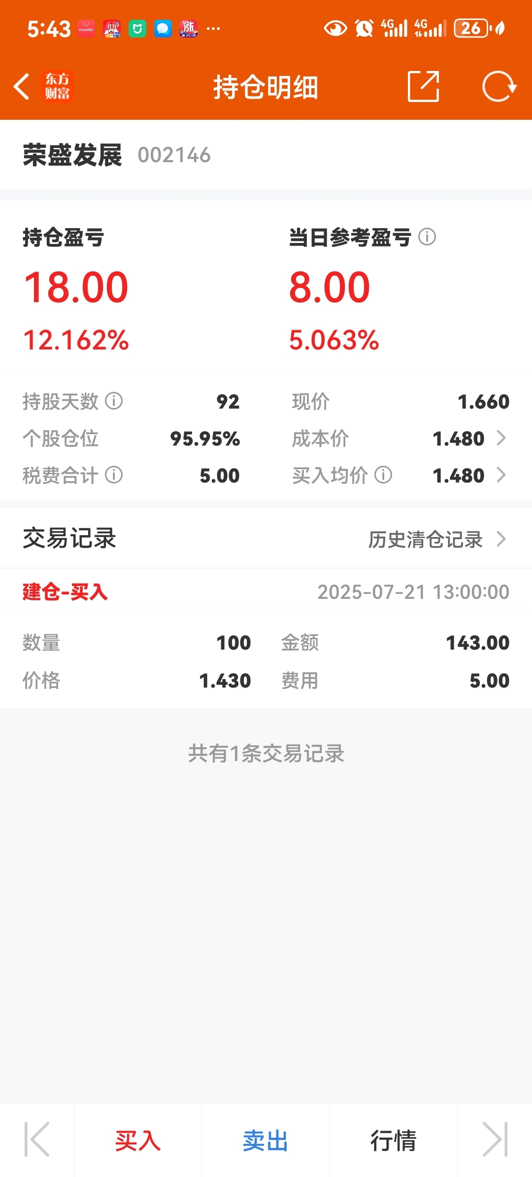 $荣盛发展(SZ002146)$ 持股92天坚定持有跟主力杠上了