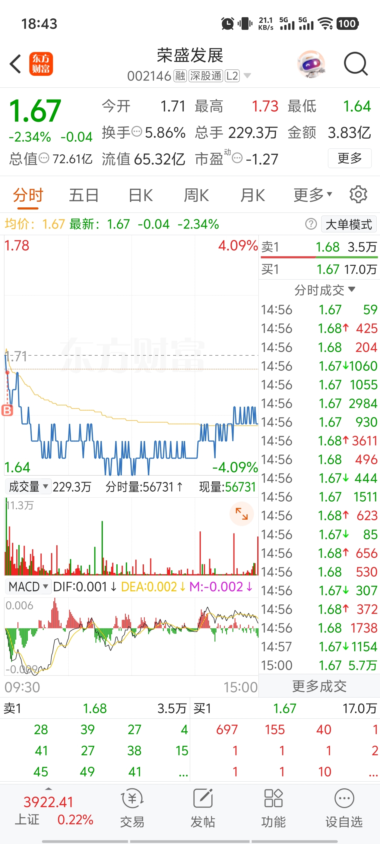$荣盛发展(SZ002146)$ 今天早盘又来了,先打个底仓,明天跌了再补,赚了就卖