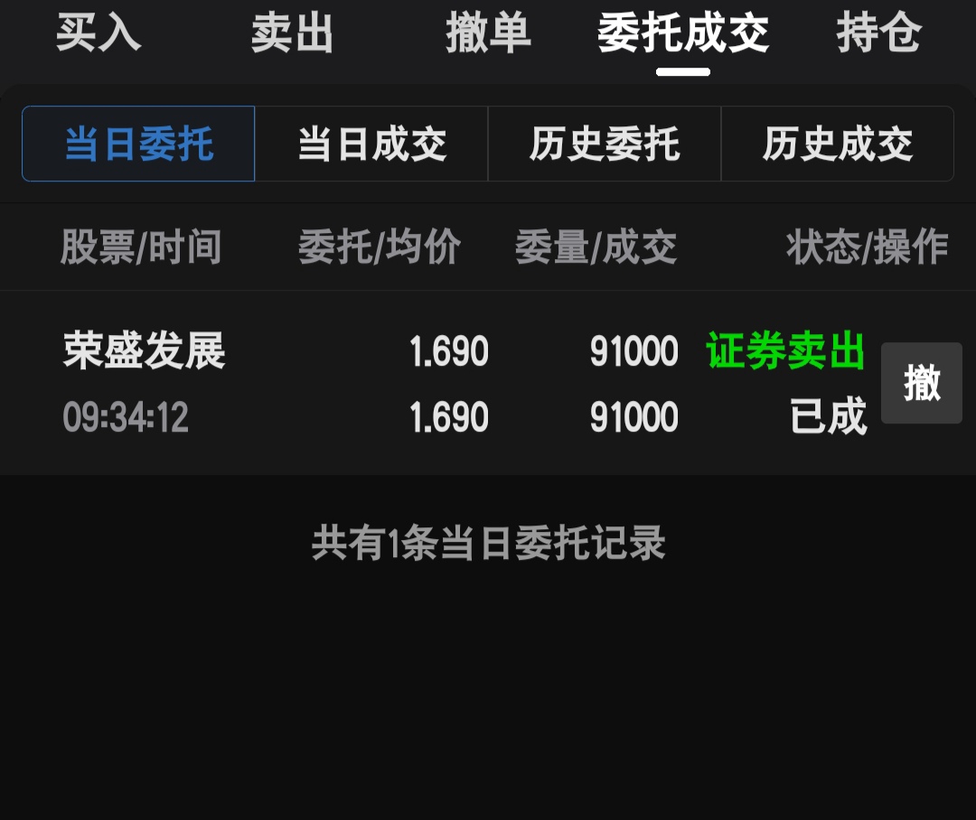 $荣盛发展(SZ002146)$ 1.69卖了不知是对是错,留了1百手赚6百,昨天最高亏5千8!