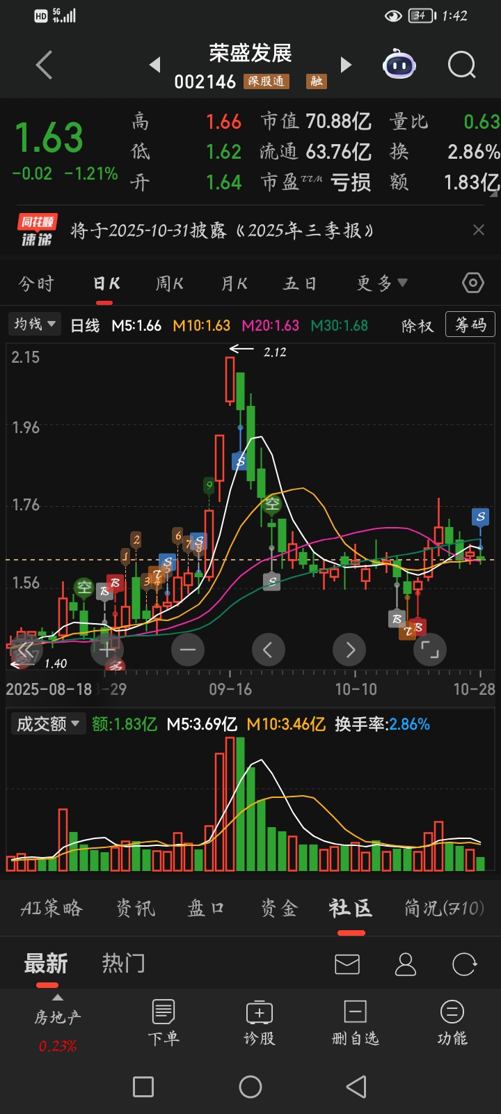 $荣盛发展(SZ002146)$ 不多就100手已清仓,你可以拉了。折磨了我7天
